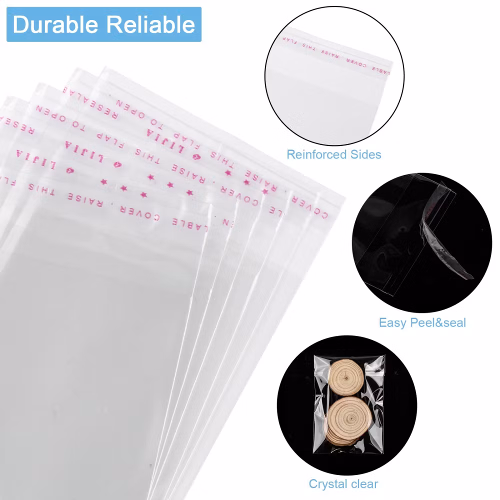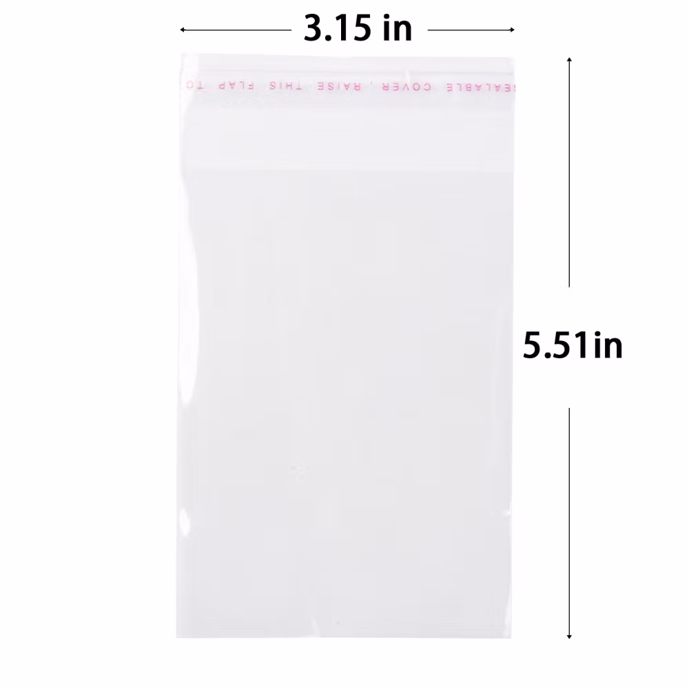 OPP-cellofanpåsar, små smyckesförvaringspåsar, självhäftande förslutningspåsar, rektangulära, genomskinliga
