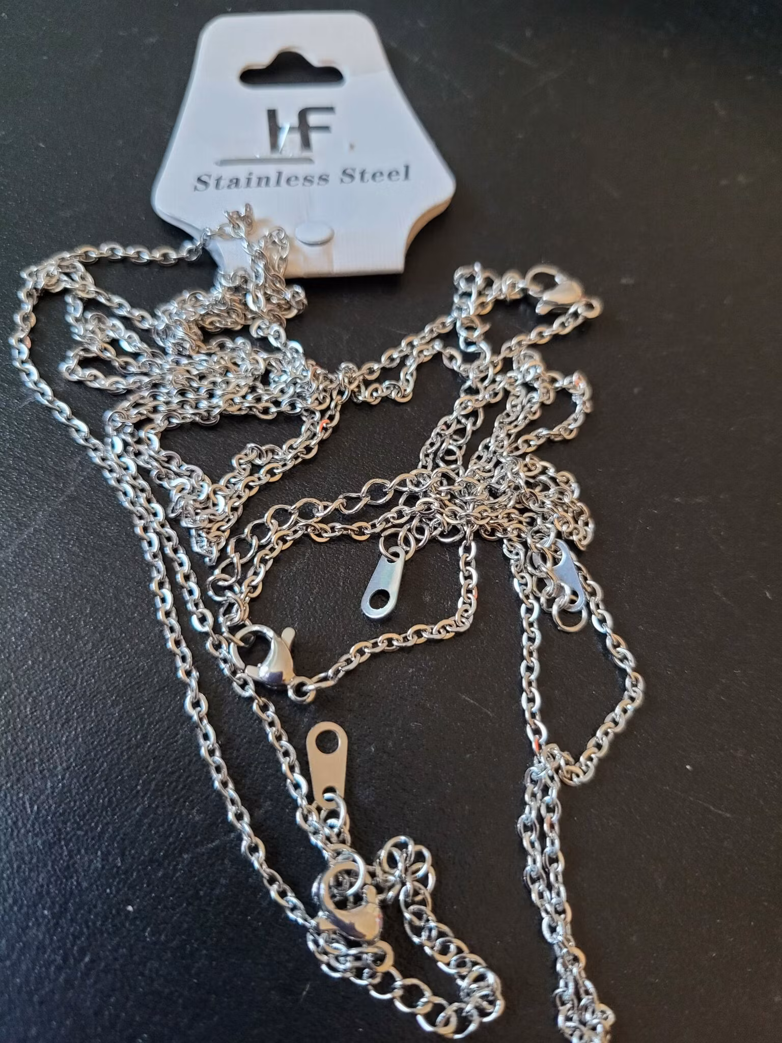 304 halsband i rostfritt stål, kabelkedjor, med klo lås. Storlek: ca 19,69 tum (500 mm) lång, 2 mm tjock, länkar: 2,5x2x0,5 mm.