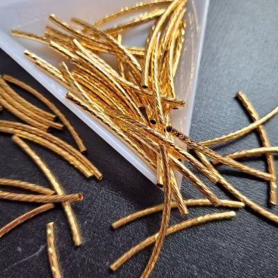 182 Mellandel tub guldig 10 stk 14 kr Räfflad tub i mässing. Guldpläterad. Storlek ca 5~6cm med 1mm hål10 stk i påsen I lager. Lägg i korgen Lagersaldo: 8 Artikelnummer: 182 Dela Information Recensioner Räfflad tub i mässing. Guldpläterad. Storlek ca 5~6cm med 1mm hål10 stk i påsen