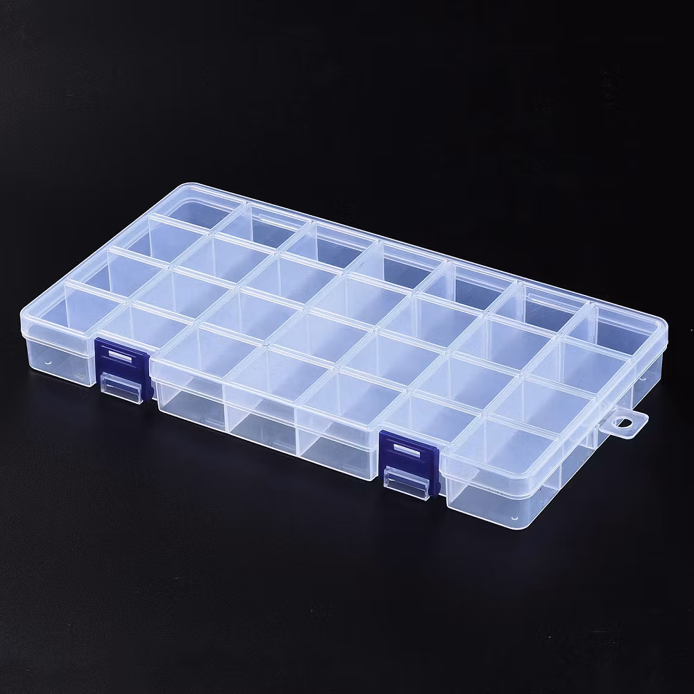 ● Användning: dessa behållare med 28 rutnät eller 24 rutnät används för att förvara och sortera olika pärlor, små accessoarer, nagelkonst, mynt, smyckesdetaljer, örhängen, ringar, elektroniska komponenter, gör-det-själv-pyssel, små föremål och så vidare.