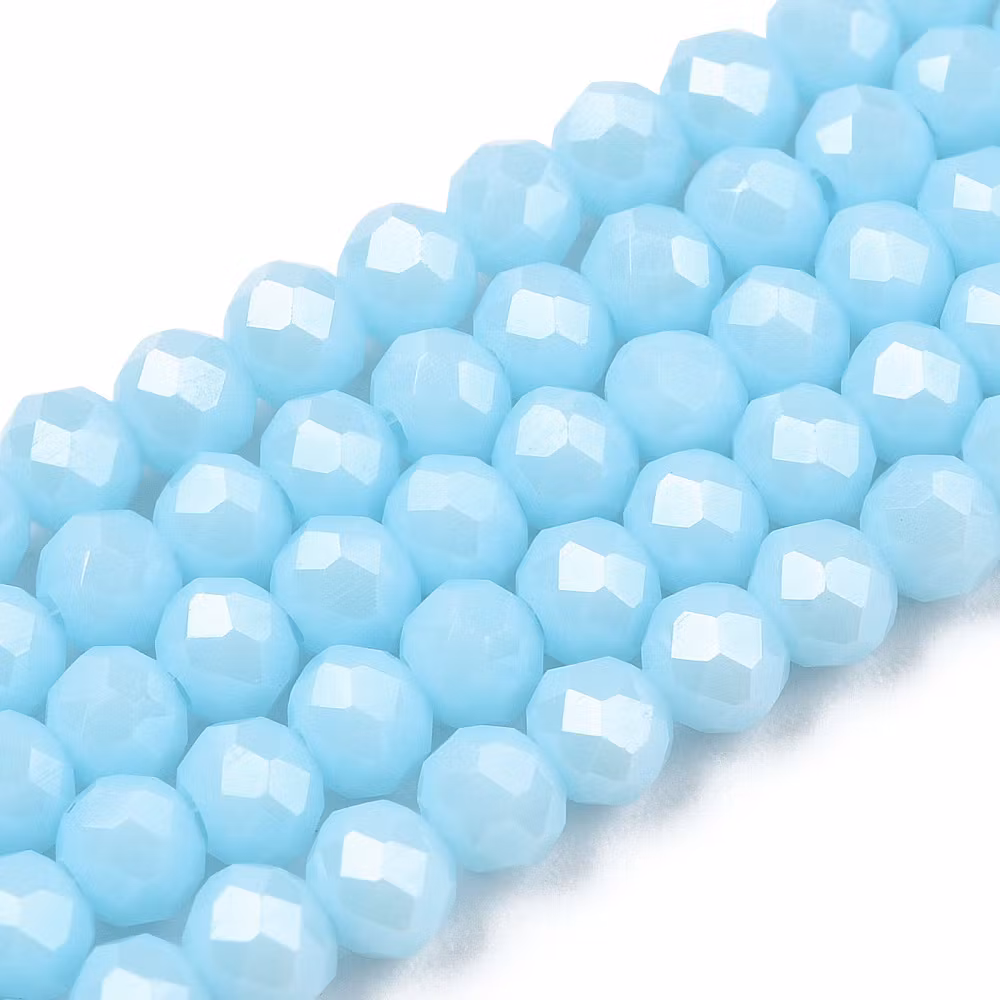 Utförande: genomfärgad, fasetterade, rondeller, light blue