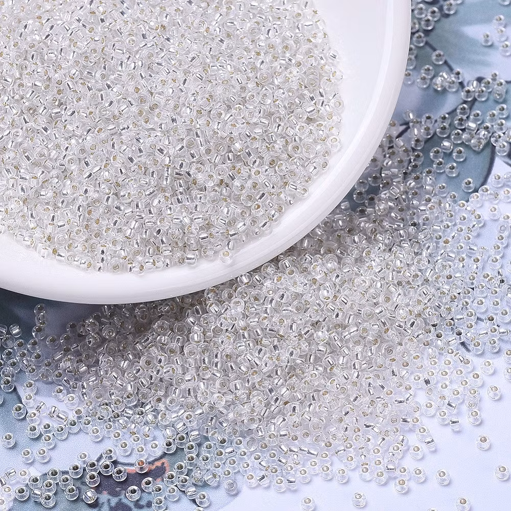 MIYUKI Runda Rocailles-pärlor, Japanska Rocailles-pärlor, (RR-01) silverlined crystal.