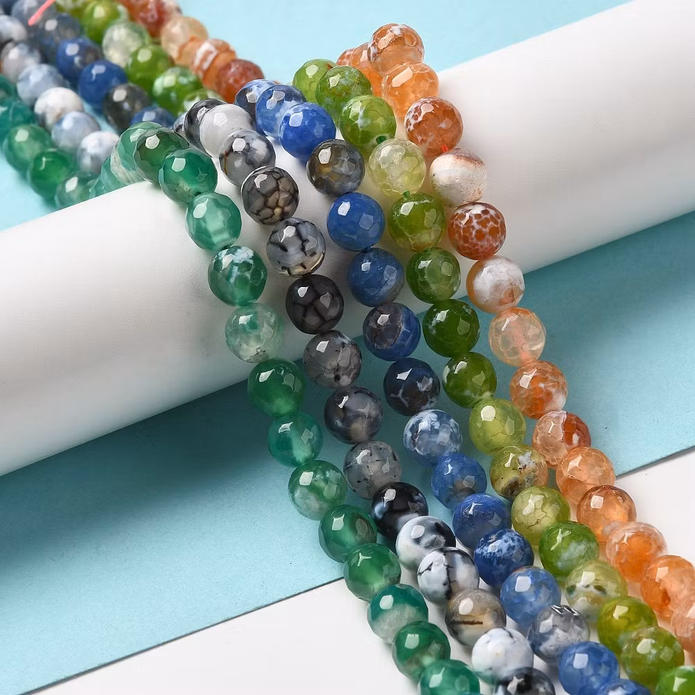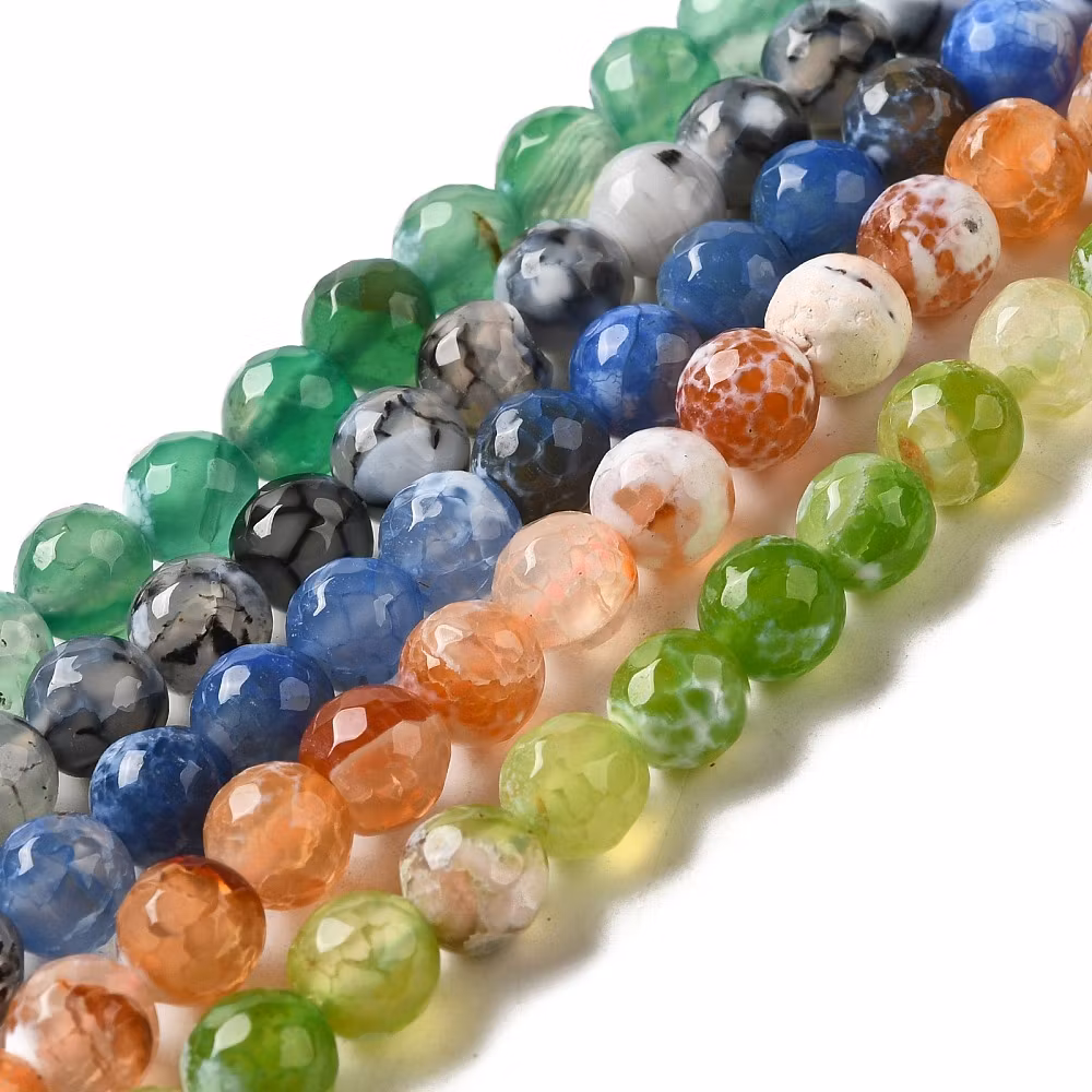 Naturlig Fire Crackle Agate Beads-strängar, färgade, facetterade, runda, blandade färger